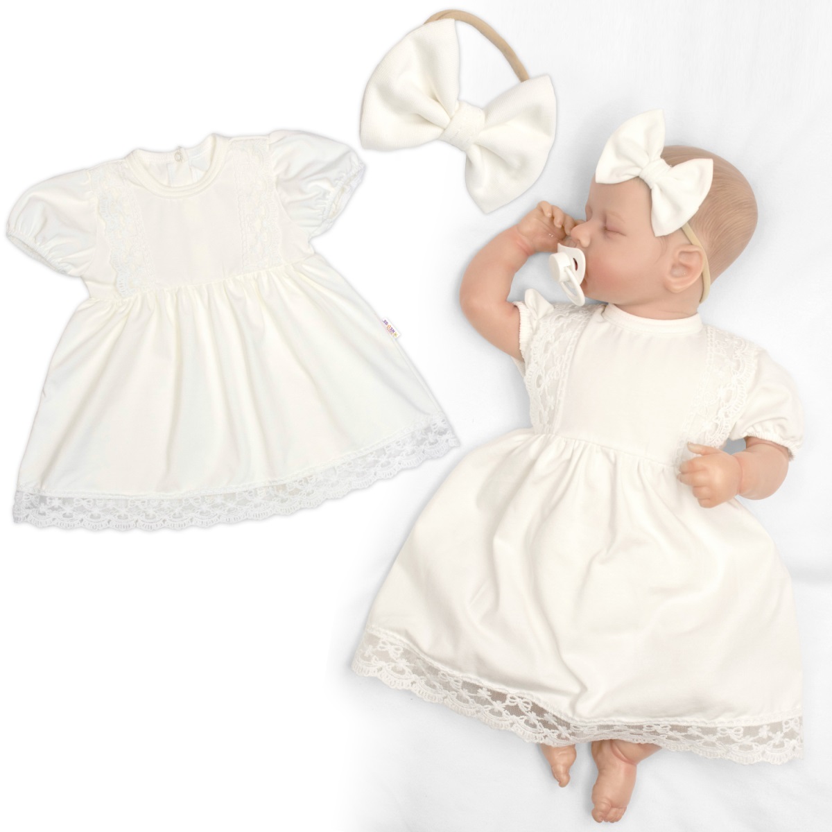 Bavlnené šatočky s čelenkou Baby Nellys — elegantný komplet pre bábätká | Luxusné Šaty s čipkou.