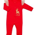 Mamatti Dojčenský bavlnený overálok s volánikmi Christmas, červený