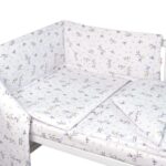120×90 – obliečky na perinku 120x90cm, obliečky na vankúšik 40×60 cm, mantinel 60x60x60cm – na postieľku 120x60cm.