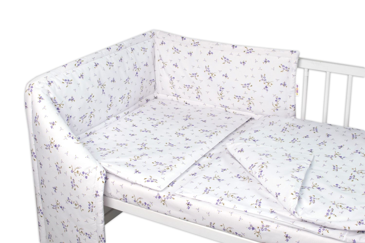 Mantinel s obliečkami, 3dielna sada Levanduľa, Baby Nellys, biela/fialová, 135×100 cm