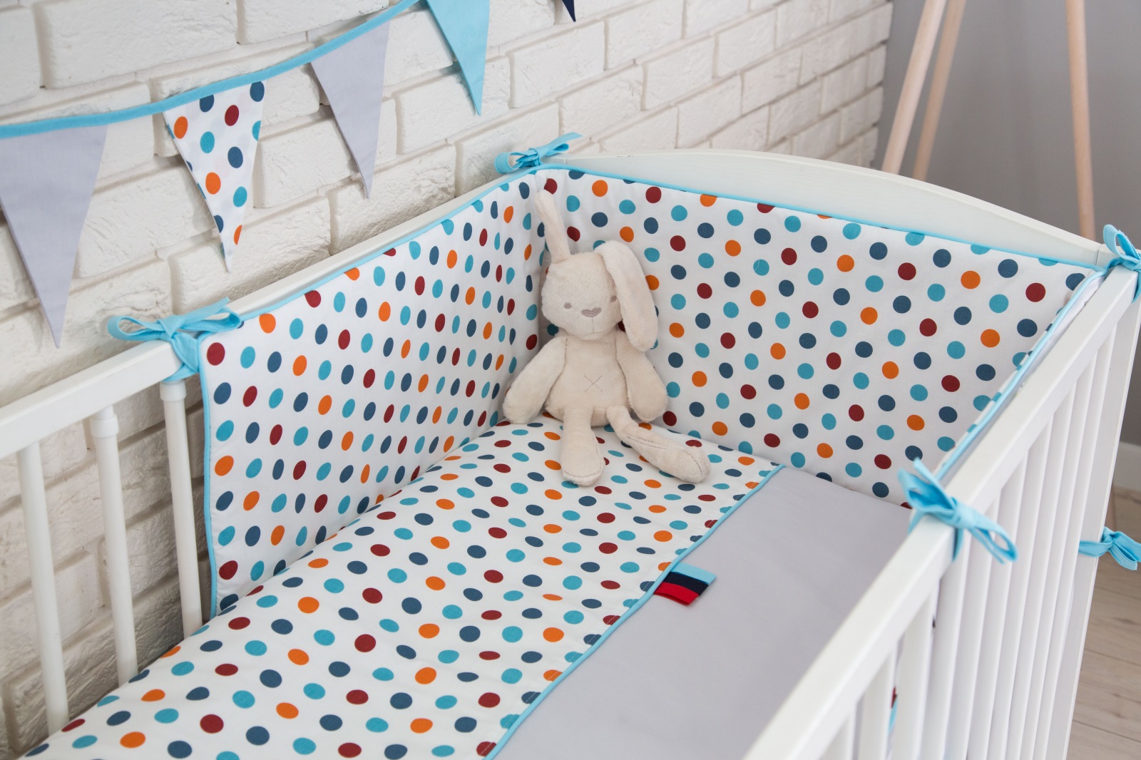 Mantinel s obliečkami BABY LOVE, 135x100cm, Barevné puntíky