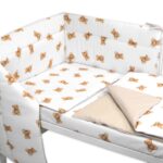 Mantinel s obliečkami do postieľky, 3D sada Bavlna, Míša – biela s potlačou