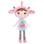 Handrová bábika Metoo Smile s ružovú čiapočkou a ružovými topánočkami.
