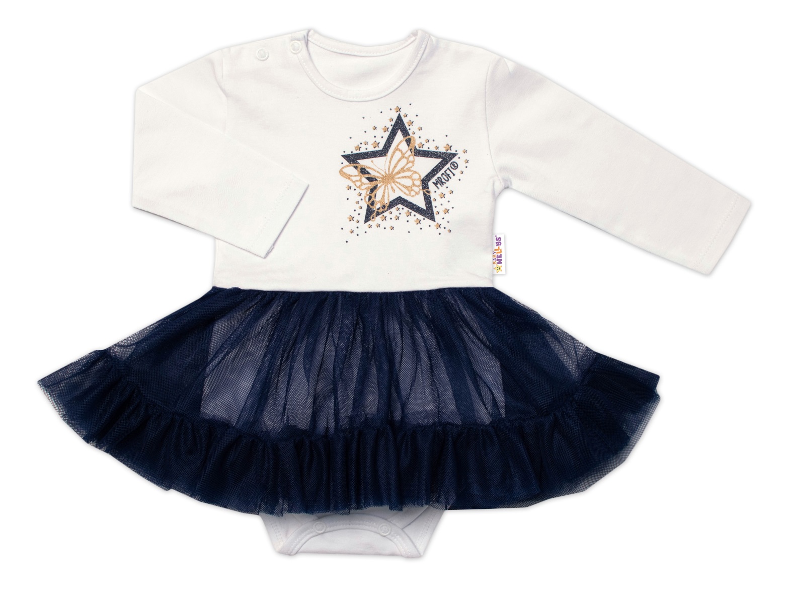 Materiál: 95% bavlna + 5% elasten, tyl: 100% polyester.