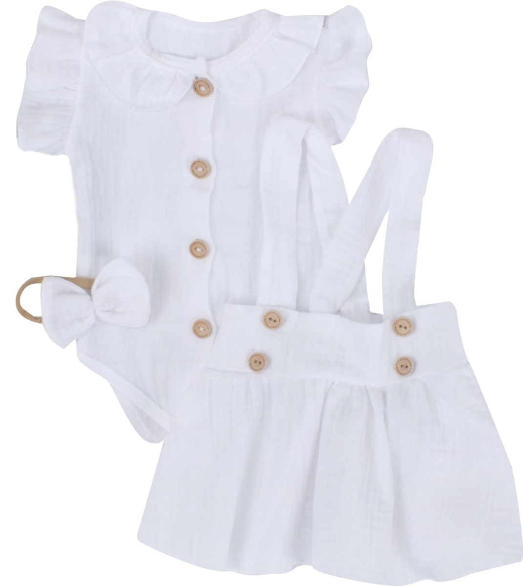 Mušelínová suknička s lacnom, bodýčko a čelenka, 3D sada, biela/biela, veľ. 86
