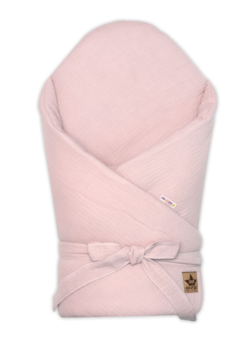 Mušelínová zavinovačka s výstužou na zaväzovanie, Baby Nellys, 75x75cm, púdrovo ružová