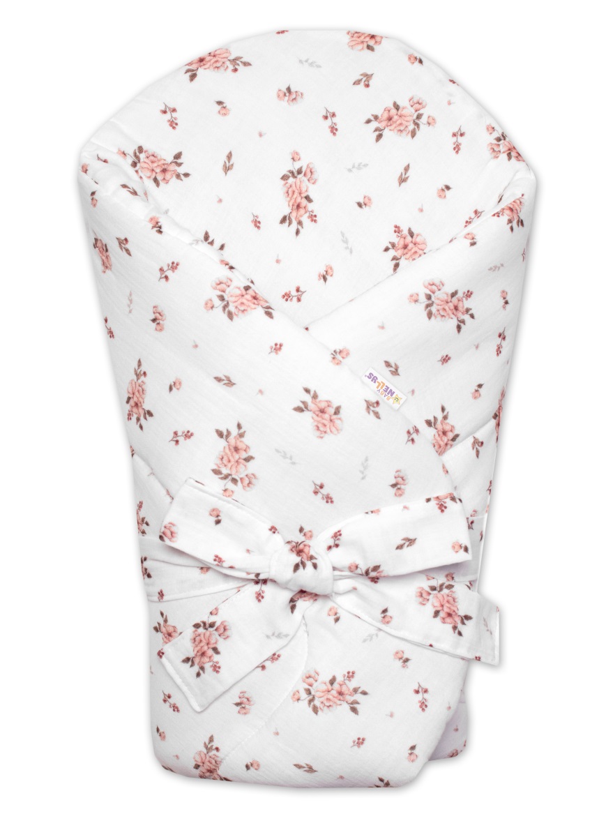 Mušelínová zavinovačka s výstužou na zaväzovanie Little Flowers, Baby Nellys 75x75cm,biela