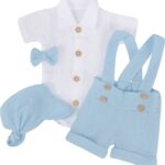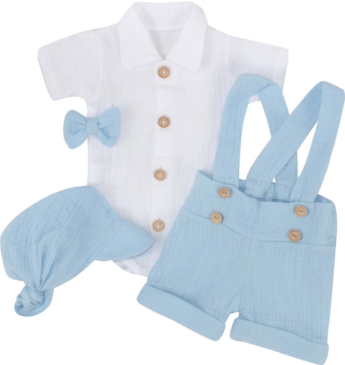 Mušelínové kraťasy s láclom, bodýčko, čiapočka, motýlik 4D sada, Z&Z, modrá/biela