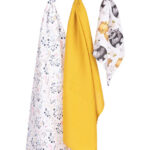 Tento set obsahuje 3 plienky v rôznych veľkostiach: 120×120 cm, 60×80 cm a 38×38 cm, +- 2cm, ktoré využijete pri zavinovaní, kŕmení aj hygiene.