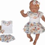 Mušelínové tilko, kraťasy so sukničkou + čelenka, 3D sada, Kvety Z&Z, biela, veľ. 98