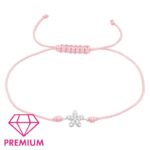 Náramok pre deti so striebornou ozdobou Kvet s bielym zirkónom, ružový
