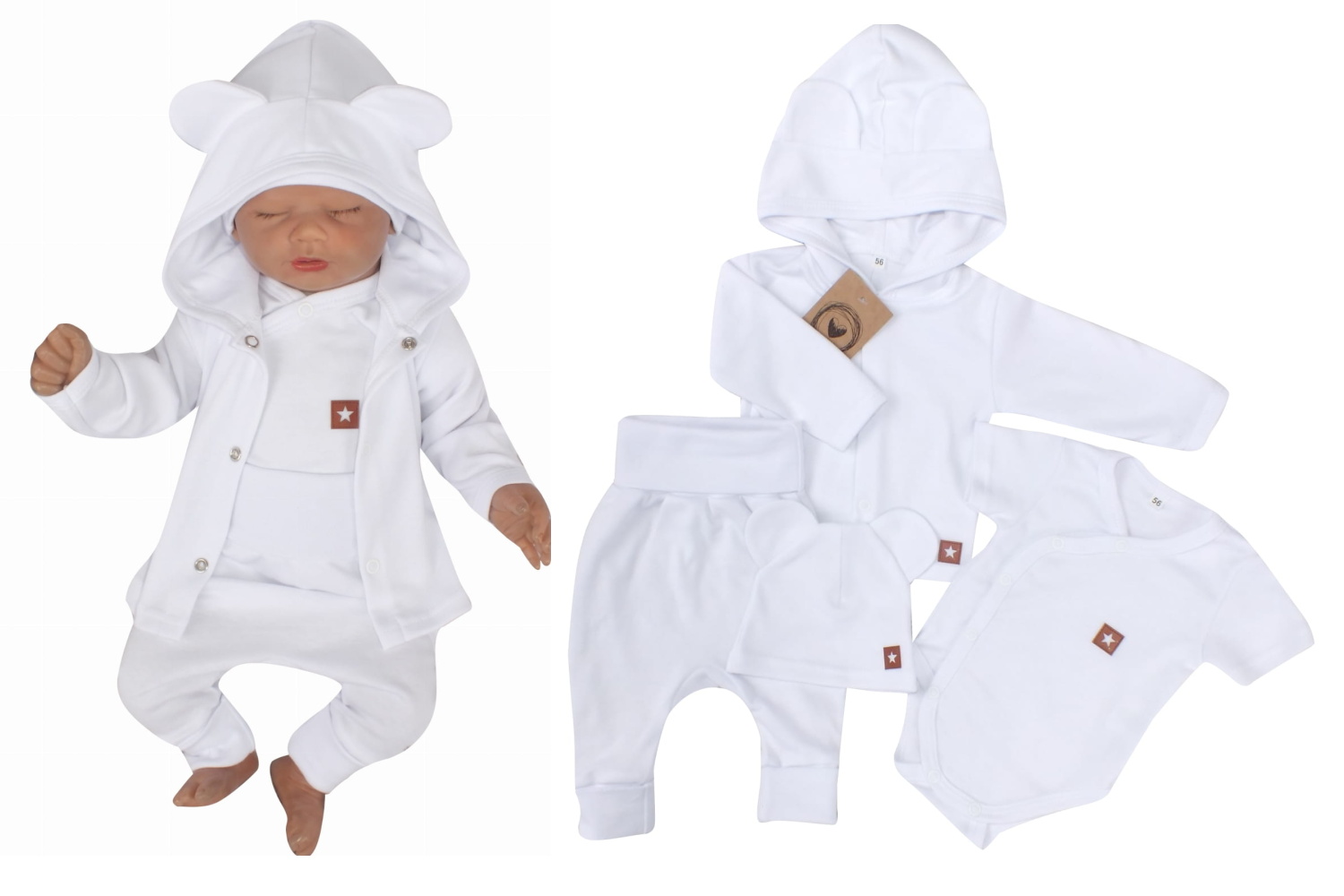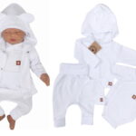 Novorodenecká sada 4D, body kr. rukáv, tepláčiky, kabátik a čiapočka Z&Z, biela