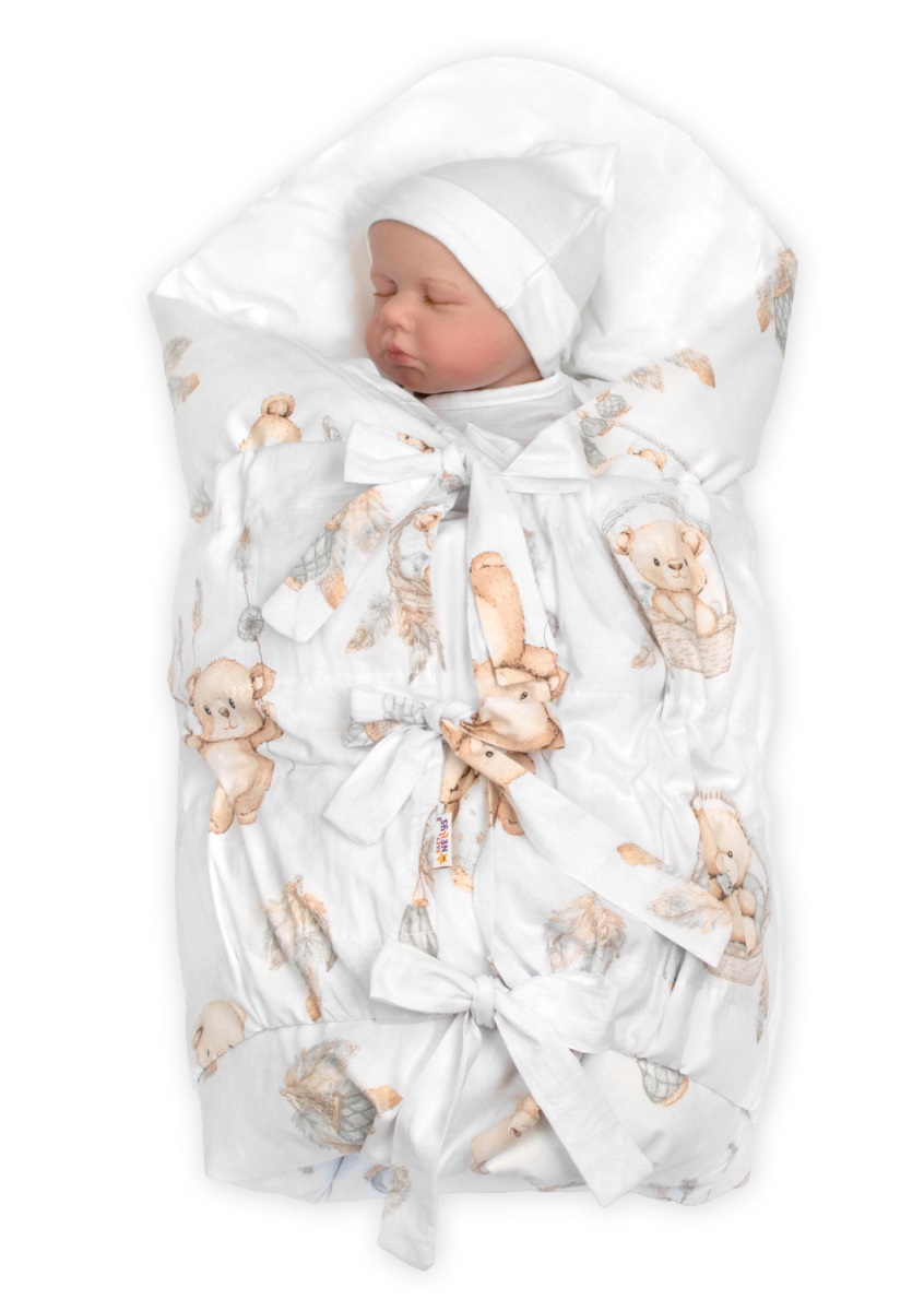 Obliečka, poťah bavlna na retro zavinovačku, Malý Medvedík – biela, béžová
