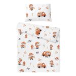 Obliečky do postieľky s výplňou + vrecúško, bavlna, Hasiči, 135x100cm/40x60cm