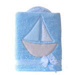 Obojstranná chlpáčková dečka s vyšívkou 75 x 90 cm, Lodička, modrá