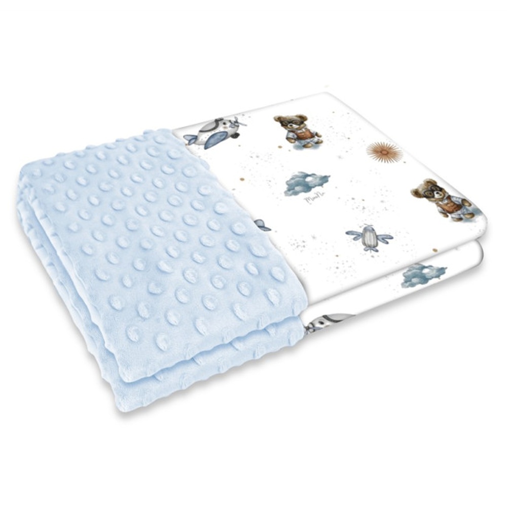 Obojstranná deka, Bavlna/Minky 100 x 75 cm, Méďa pilot – biela, modrá