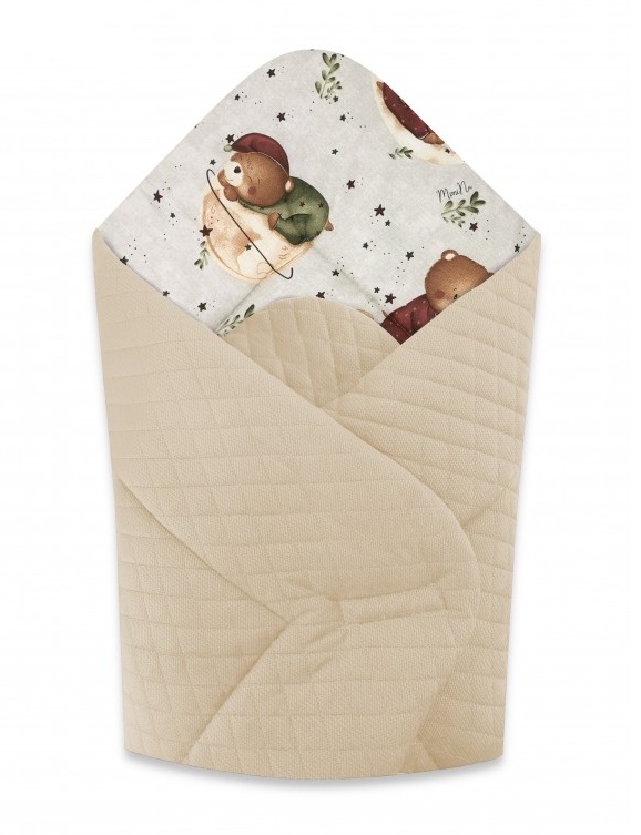 Obojstranná zavinovačka bavlna/VELVET, Teddy and Moon – béžová