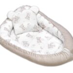 Obojstranné hniezdočko s vankúšikom, Bavlna/Velvet, 50 x 80 cm,Malý medvedík, biela,béžová
