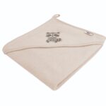 Osuška s kapucňou a uškami Mýval, 80×80 cm – béžový