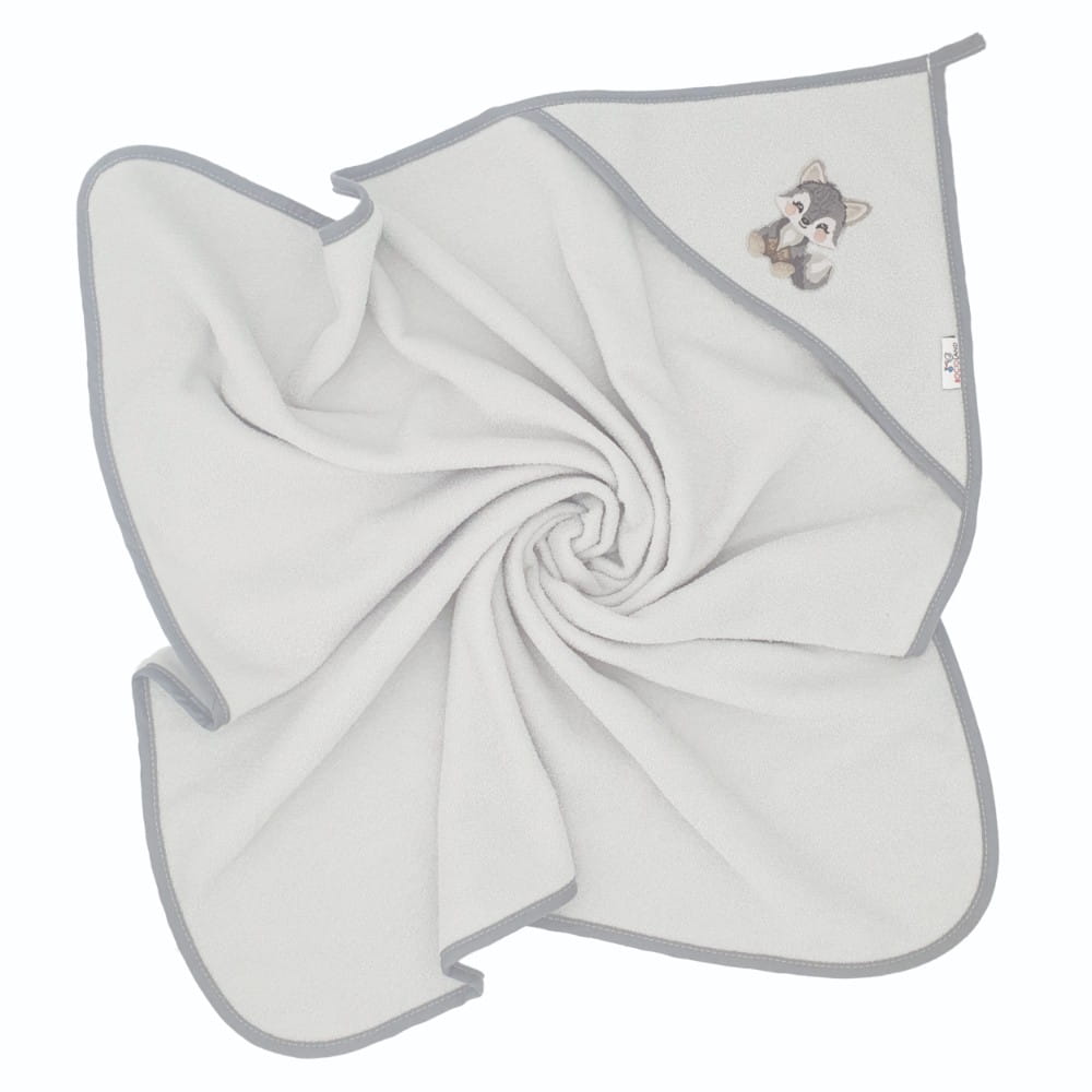 Osuška s kapucňou a uškami Vlček, 100×100 cm – šedý