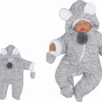 Oteplená pletená kombinéza s kapucňou a uškami + rukavičky – sivá, veľ. 68