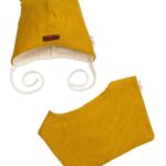 Pletená čiapka s bavlnenou podšívkou a šatkou 2v1, Teddy Hand made – horčicová