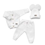 Svetrík má zapínanie na gombíky. Zaručuje pohodlie a pohodlie pri obliekaní. Perfektné pre každé ročné obdobie. Dlhé manžety na rukávoch umožňujú svetríku rásť s dieťaťom. Nohavice majú veľmi elastický pás, vďaka ktorému sa nohavice prispôsobia každej postave a predĺžené manžety v spodnej časti navyše umožnia nohaviciam rásť s dieťaťom.