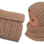 Pletená zimná čiapka s brmbolcom + komínček BABY NELLYS – bežová,veľ. 48-52cm