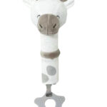 Plyšová hračka s pískatkom a hryzátkom Žirafka, 17 cm – šedá, biela