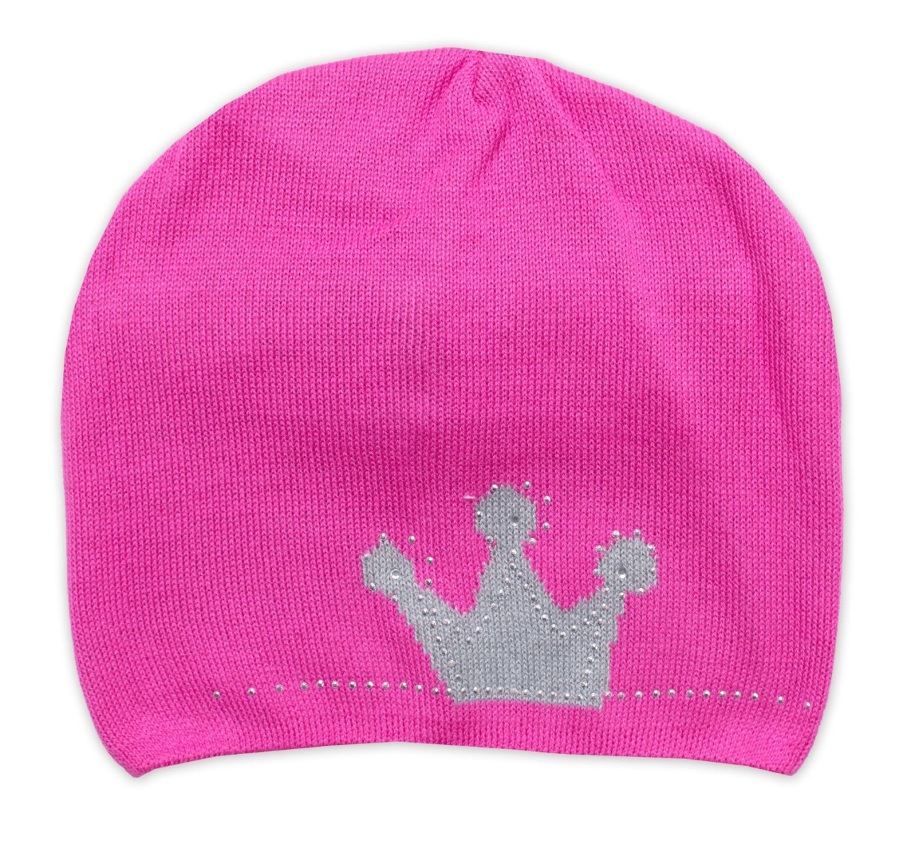 Prechodová dvojvrstvová čiapka Korunka s kamienkami, malinová, 42-52 cm