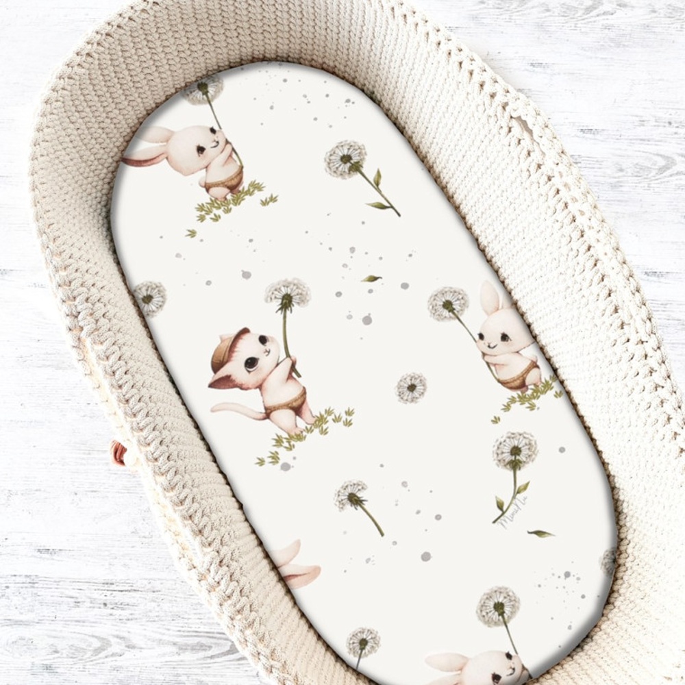 Prestieradlo do kočíka, koša, bavlna, Kocúrik a púpava – biela
