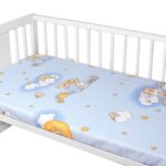 Prestieradlo do postieľky 140x70cm, bavlna, Premium, Medvedík na rebríku, modré