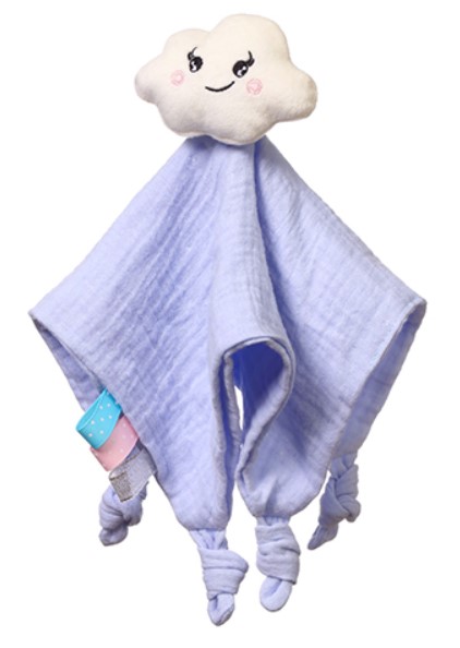 Blinky Cloud je produkt dva v jednom: deka a plyšová hračka v tvare obláčika. Je vyrobená z mušelínu – jedného z najjemnejších materiálov. Vďaka tomu je vhodný pre novorodencov od prvých dní života. Má vzdelávacie a zmyslové hodnoty. Uzly na rohoch a štítky pomáhajú rozvíjať obratnosť. Detaily priťahujú pozornosť batoľaťa. Mušelínová tkanina zaisťuje optimálne prúdenie vzduchu.