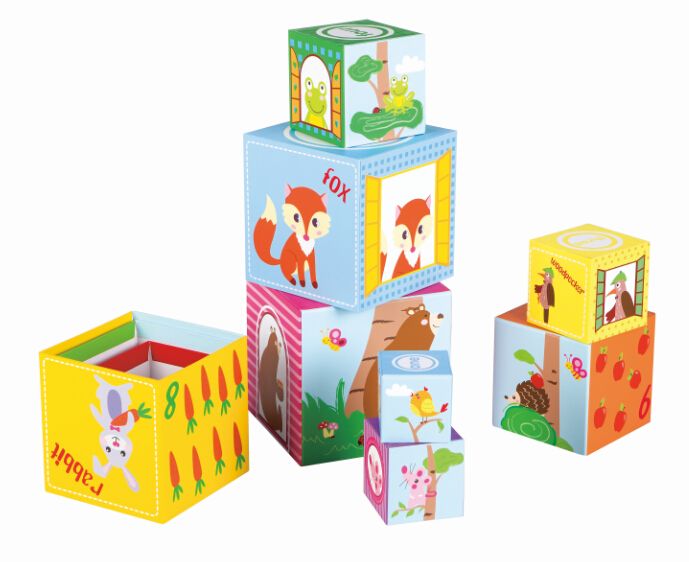 Farebné kocky sú vyrobené z pevného kartónu.