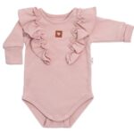 Rastúce body NATURE, dlhý rukáv s volánikmi, bavlna, staroružová, veľ. 62/68