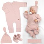 Rastúci rebrovaný overálek, čiapočka a topánočky, 3D, Nature – púdrovo ružová