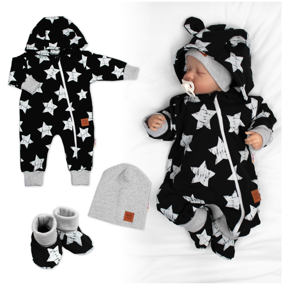 Rastúci teplákový overal pre bábätko, čiapky, topánky, 3D, Nature Star – čierny