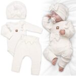 Rebrovaná rastúca sada z mäkkej bavlny predstavuje ideálnu voľbu pre bábätko. Body s dlhými rukávmi ponúkajú možnosť prispôsobenia dĺžky pomocou dvoch radov cvokov v rozkroku. Tepláčiky sú vybavené širokým vyhrňovacím pásom a dlhými nápletmi na nohavičkách. Vďaka týmto nápletom sa tepláčiky jednoducho prispôsobia rastu vášho dieťatka.