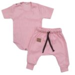 Rebrovaná súprava body kr. rukáv + tepláčiky Magic, bavlna, ružová