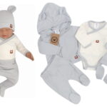 Sada do pôrodnice 5D, body, polodupačky, kabátik, čiapočka, rukavičky – sivá