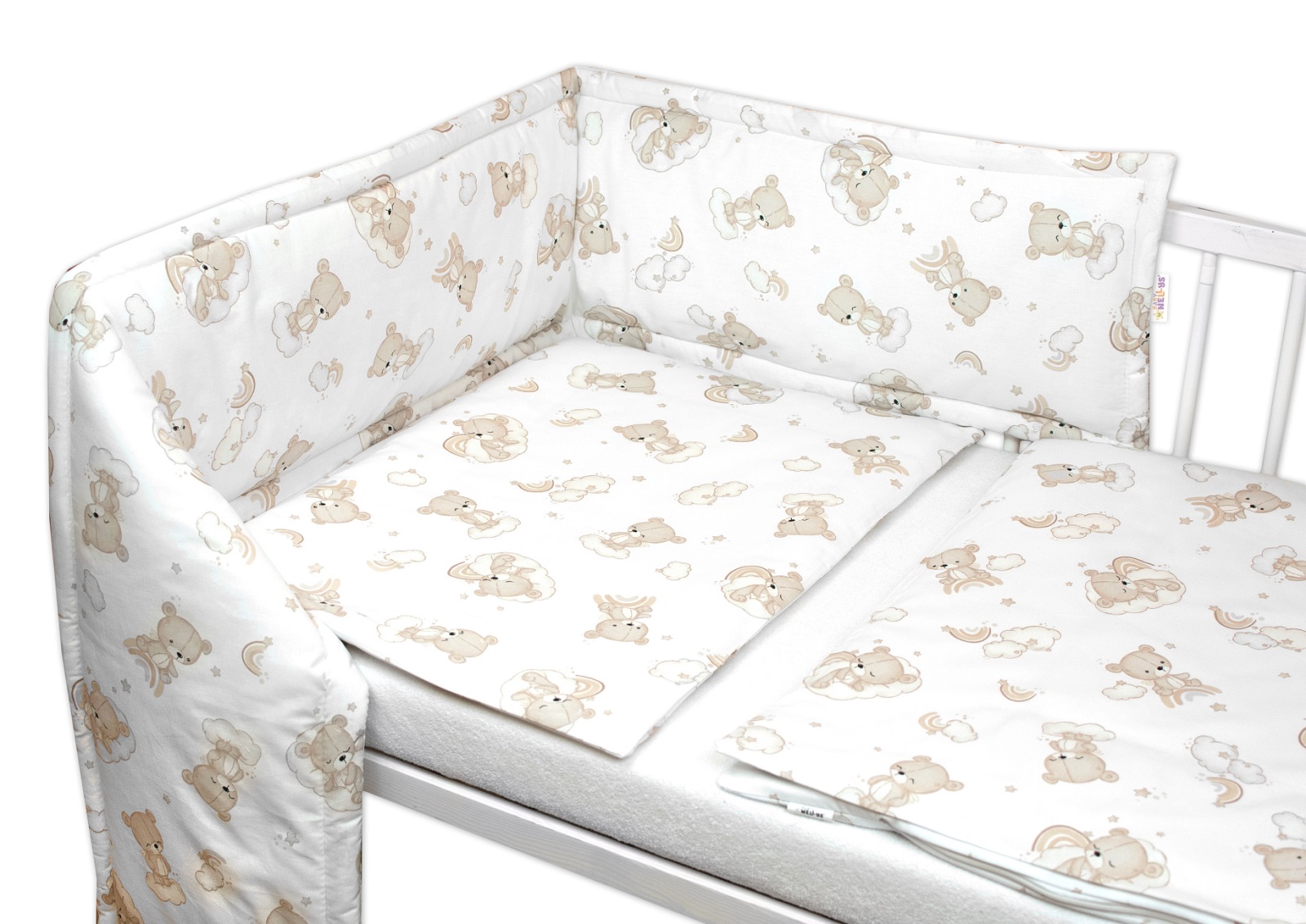Sada do postieľky Mantinel s obliečkami, 3D sada – Malý Macko, biela/béžová, 135×100 cm