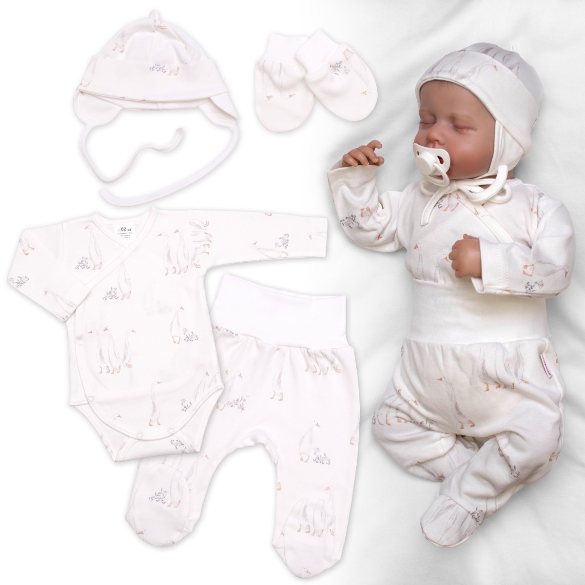 Sada oblečenia pre bábätko, 4D, bavlna, Husičky, smotanové, veľ. 62