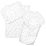 Sada pre bábiku 3D – zavinovačka, perinka a vankúšik, Hviezdičky,biela/sivá