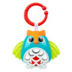 Farebná hrkálka malej sovy má mäkké plastové bruško a vo vnútri guľôčku, ktorá vytvára zábavný pohyb, keď s ním zatrasiete.