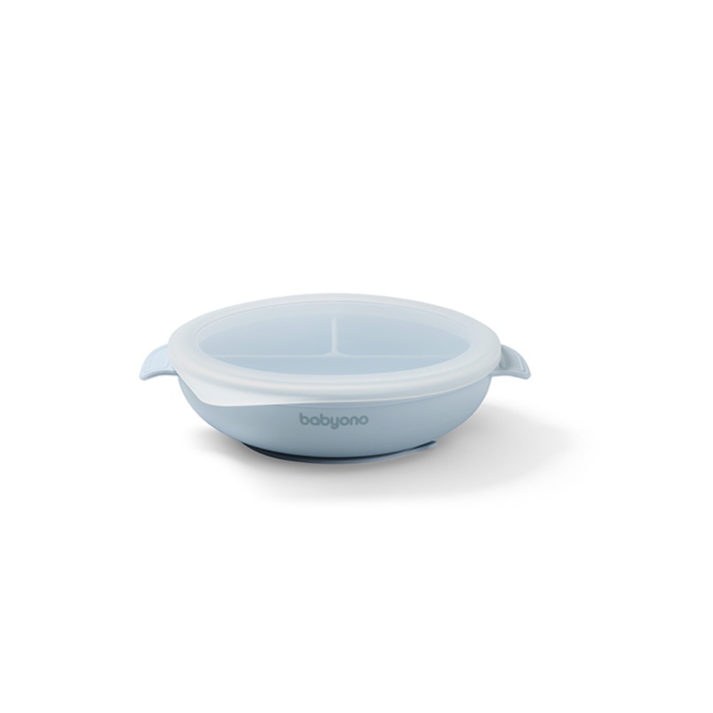 Delený tanier s prísavkou a viečkom BabyOno – ideálny na zavádzanie príkrmov a metódu BLW.
