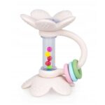 Hrkálka je zdobená silikónovými kvietkami, ktoré príjemne naladí vaše bábätko svojim veselým zvukom! Hračka je okrem farebných korálikov vybavená aj pohyblivými obručami na presun a praktickým madlom, ktoré uľahčuje držanie hračky. Vďaka výstupkom na okvetných lístkoch možno kvietky použiť ako hryzátko, prinášajúce úľavu boľavým ďasnám prerezávajúceho sa bábätka.