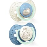 Silikónový cumlík (cumlík). Kolekcia: Lovi Night & Day. Unikátna konštrukcia zabraňuje reflexu hryzenie do cumlíky, umožňuje voľné dýchanie nosom a prirodzené prehĺtanie slín a naviac podporuje aj zdravý rozvoj reči a zhryzu. Sada obsahuje: – 1 ks cumlík (cumlík) Lovi. – 1 ks nočný cumlík (cumlík). – Kryt na cumlík (cumlík) 2 ks. – Plastová škatuľka 1 ks. Obrázky a odtiene sa môžu líšiť podľa aktuálnej dodávky výrobcu.