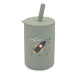 Silikónový hrnček so slamkou Raketa, 150 ml – šedý