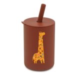 Silikónový hrnček so slamkou Žirafka, 150 ml – hnedá
