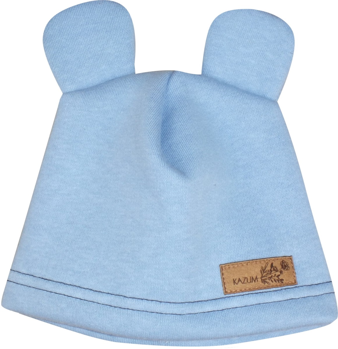 Teplá detská čiapka Kazum, bavlnená s uškami, modrá, veľ. 68/74